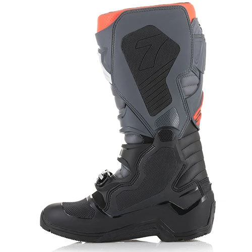 - Contoured calf protector plate is injected with high modulus polymer for impact resistance and incorporates Alpinestarsメ developed blade flex system for greater precision control and movement, added protection for heel and Achilles tendon and helps prevent hyperflexion.