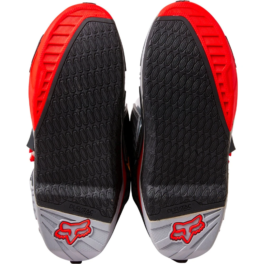 - Our exclusive Fox Duratac rubber compound provides improved durability and unprecedented grip on outsole and burn guard.